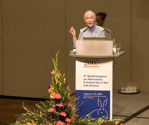 Jane Goodall beim 5, Weltkongress für Alternativen zum Tierversuch 2005 in Berlin. Nun ist die große Tier- und Umweltschützerin am 1. Oktober 2025 verstorben. Sie wird dieser Welt sehr fehlen.